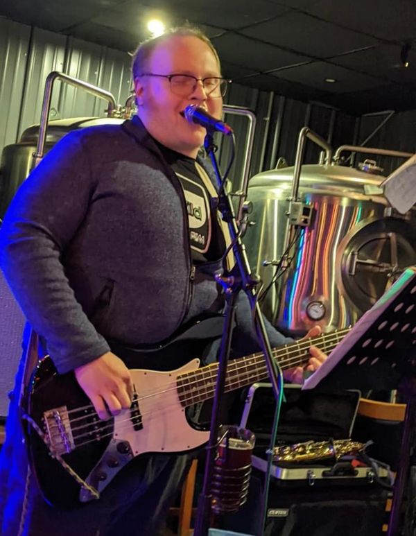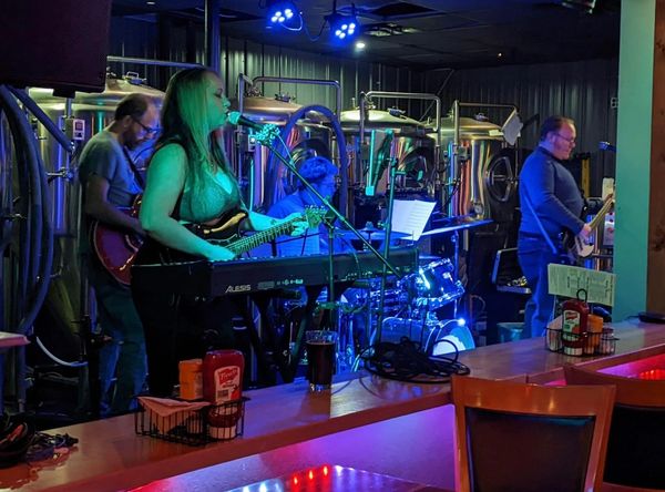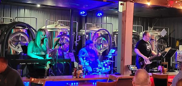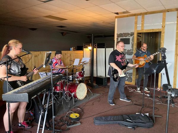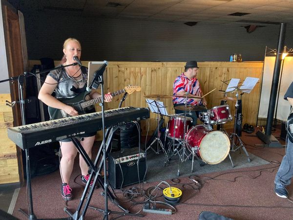 We're a four-piece band that does his songs, her songs, and a'body's songs (covers!)